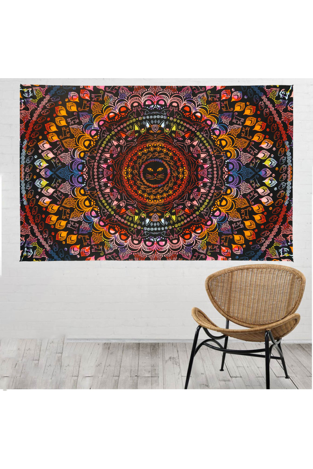 Both sizes are crafted from lightweight 100% cotton. Easy to hang, pack, and iron for a vibrant, clean look. Great for home decor, music festivals, college dorms, retail shops, boutiques, and hippie stores.