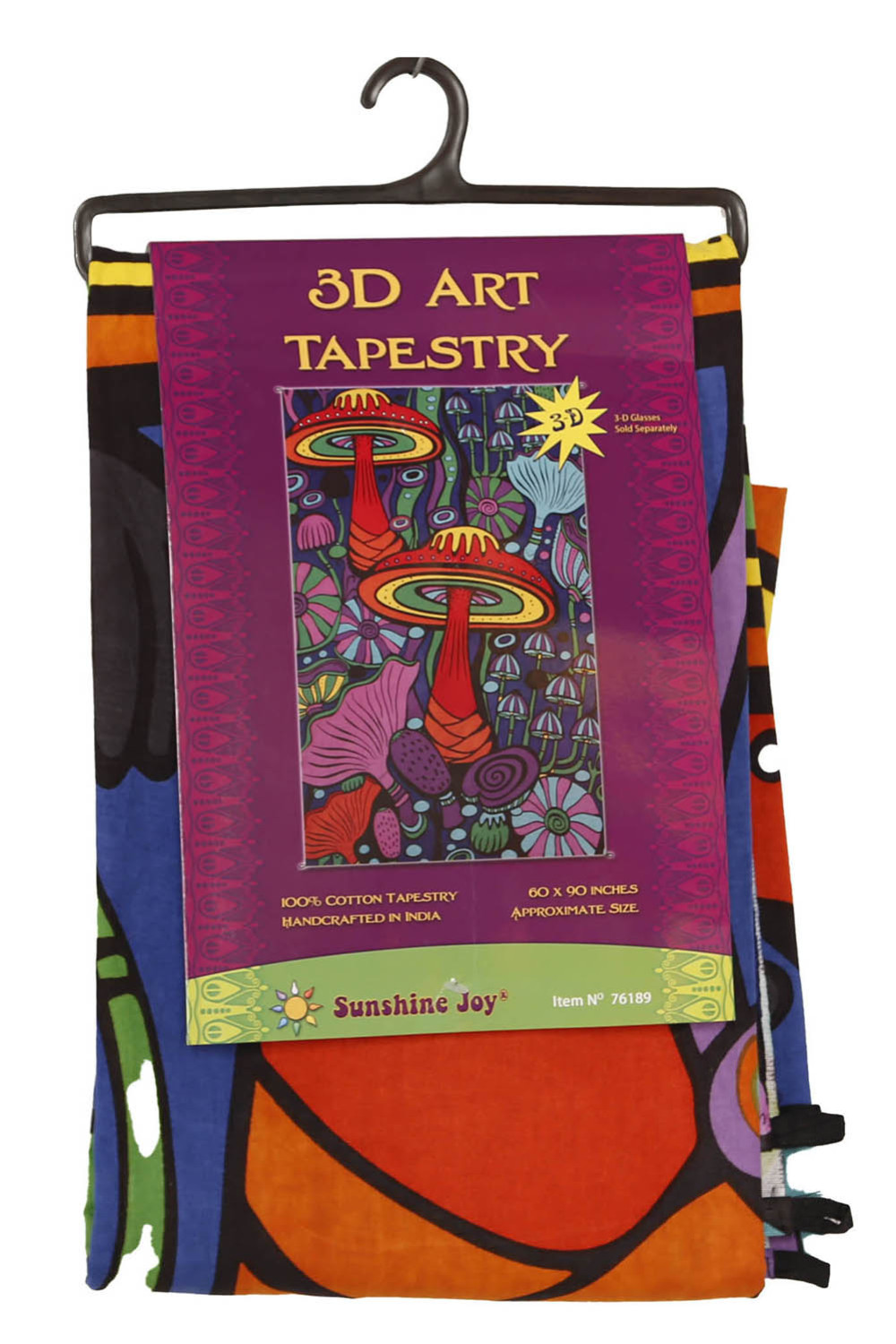 3-D Tapestry - Artwork appears to float off the fabric when viewed through special Sunshine Joy 3 D glasses (sold separately). You stare at your new Sunshine Joy tapestry intently as it hangs on your wall. You marvel at its intricate and well-crafted design and love the beauty it brings to your environment. The colors and artwork are inspiring. One would never expect anything more from this printed fabric, but then, you break out Sunshine Joy’s 3-D Glasses and WOW. You have gone deep down through the rabbit hole and into another dimension. It appears that you can get your hands behind the colors, and it’s fun watching your friends do just that.