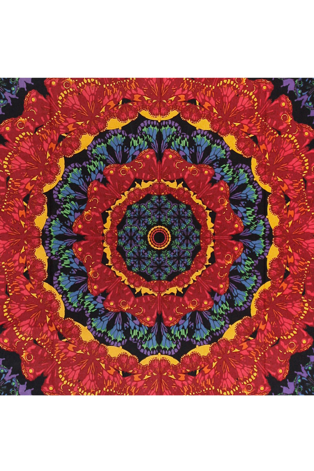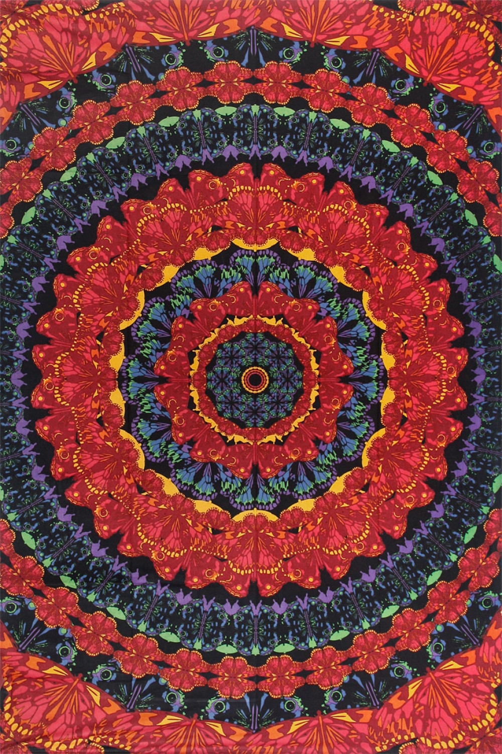 3-D Blooming Butterfly Tapestry…A vibrant butterfly mandala in bold colors...Artwork by Dina June Toomey.