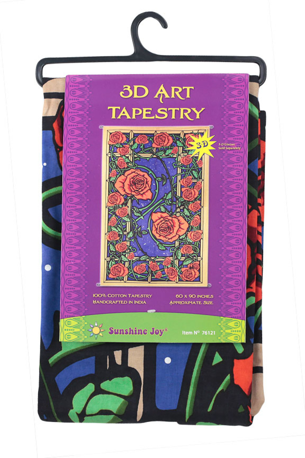 3-D Tapestry - Artwork appears to float of the fabricwhen viewed through special Sunshine Joy 3D glasses (sold separately). You stare at your new SunshineJoy tapestry intently as it hangs on your wall. You marvel atits intricate and well-crafted design and love the beauty it brings toyour environment. The colors and artwork are inspiring. One would neverexpect anything more from this printed fabric, but then, you breakout Sunshine Joy’s 3-D Glasses and WOW. Youhave gone deep down through the rabbit hole and into another dimension. Itappears that you can get your hands behind the colors, and it’s funwatching your friends do just that.
