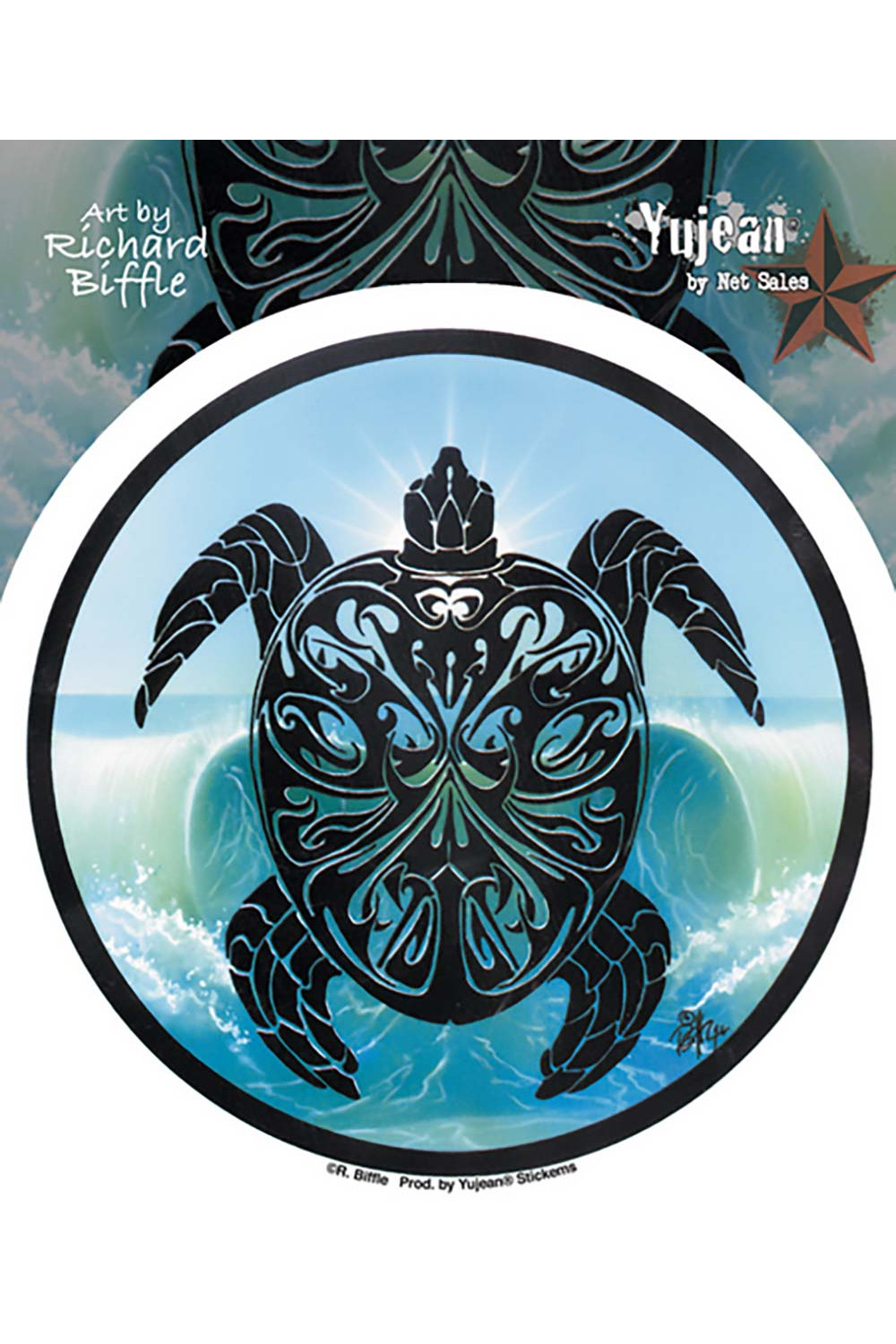 Tribal Sea Turtle Sticker. Die cut. Measures 4.75 inches wide. Art by Richard Biffle