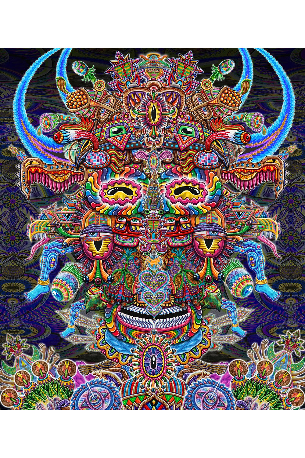 Bullish Man Heady Art Print Tapestry 58x76 - Artwork by Chris Dyer. High-resolution artwork printed on high quality, 100% cotton fabric. Brought to you by our good friends at Zest For Life.These digital print tapestries incorporate the latest in high-resolution digital fabric printing. These tapestries make great wall hangings and can also be used as tablecloths, beach sheets, room dividers, curtains, window treatments, ceiling decor, and furniture covers. The corner loops make these tapestries the perfect multipurpose outdoor traveling companion. Secure your picnic sheet. At outdoor concerts or festivals, stake out an appropriate amount of space for your friends. Tie up a sunscreen at the campsite. Great at the beach as a windproof beach sheet or sun cover-up.