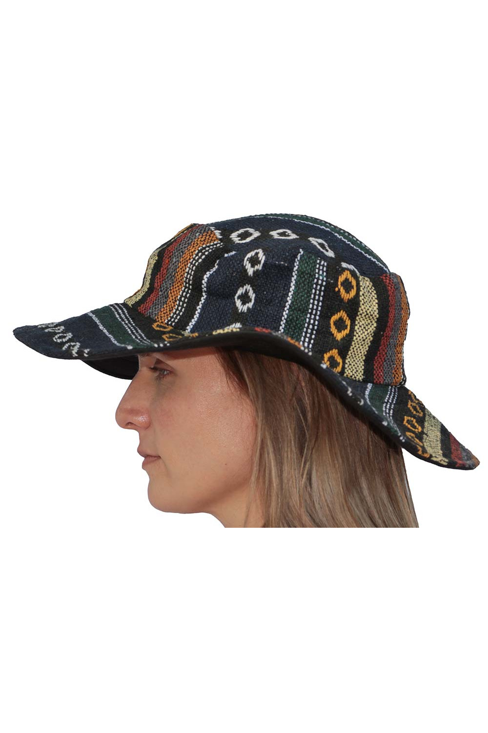 Our woven floppy hats are 100% cotton and made for fun! Featuring bold patterns, these will stand out in a crowd while keeping the sun off of you. They are lined with black material so you don’t have to worry if they get dirty. And if they do, throw them in the washer This packable hat can be rolled up and tossed into your luggage without worrying about the shape.