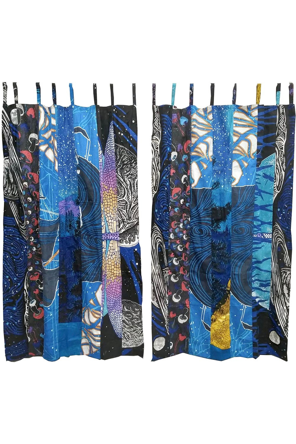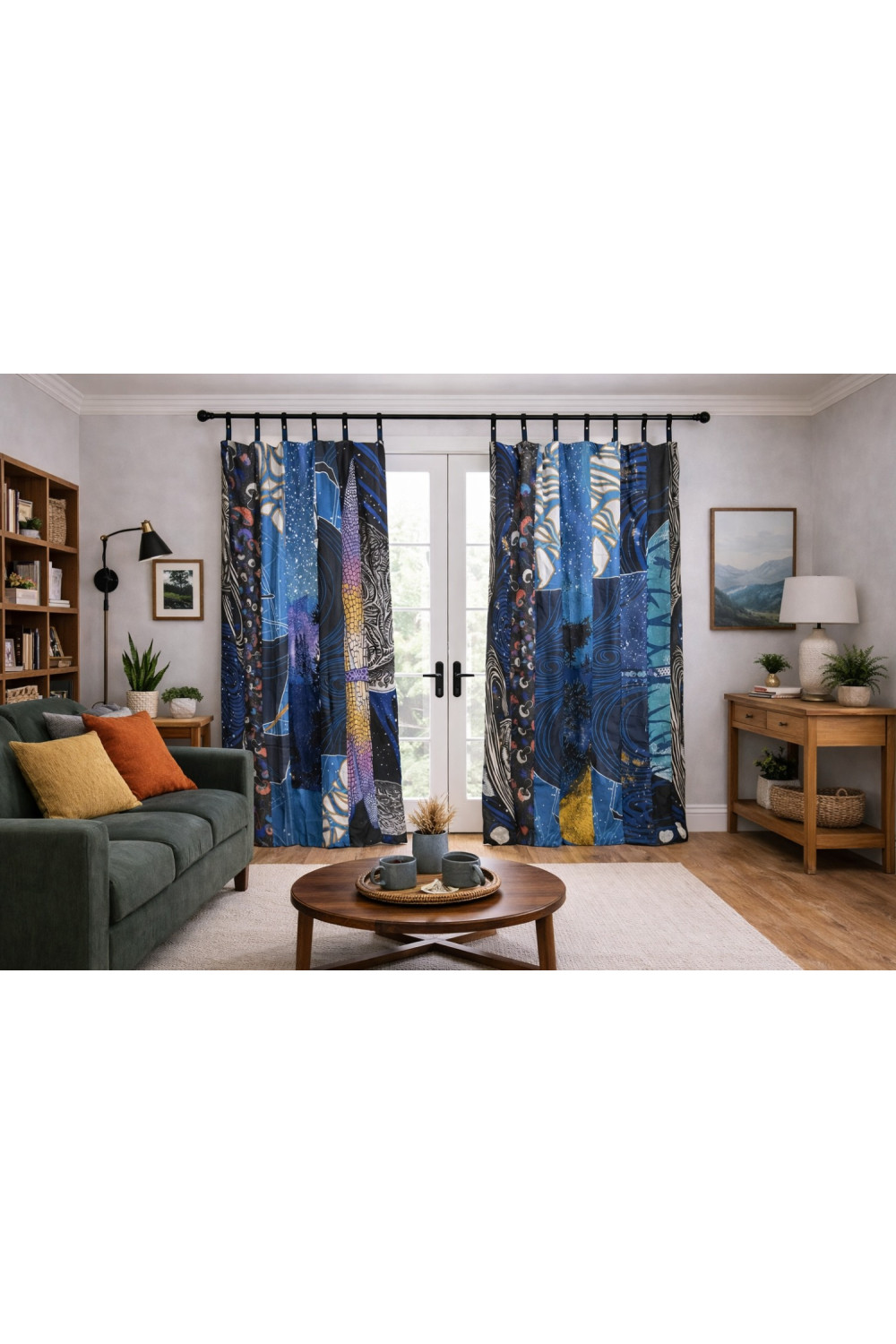 Sized approximately 56.5 inches wide by 85 inches tall, with sturdy top tabs for easy hanging. Ideal for use as window curtains, door coverings, sliding glass door panels, or even a boho shower curtain (liner recommended). Elevate any room with vibrant patchwork vibes and artisan energy!