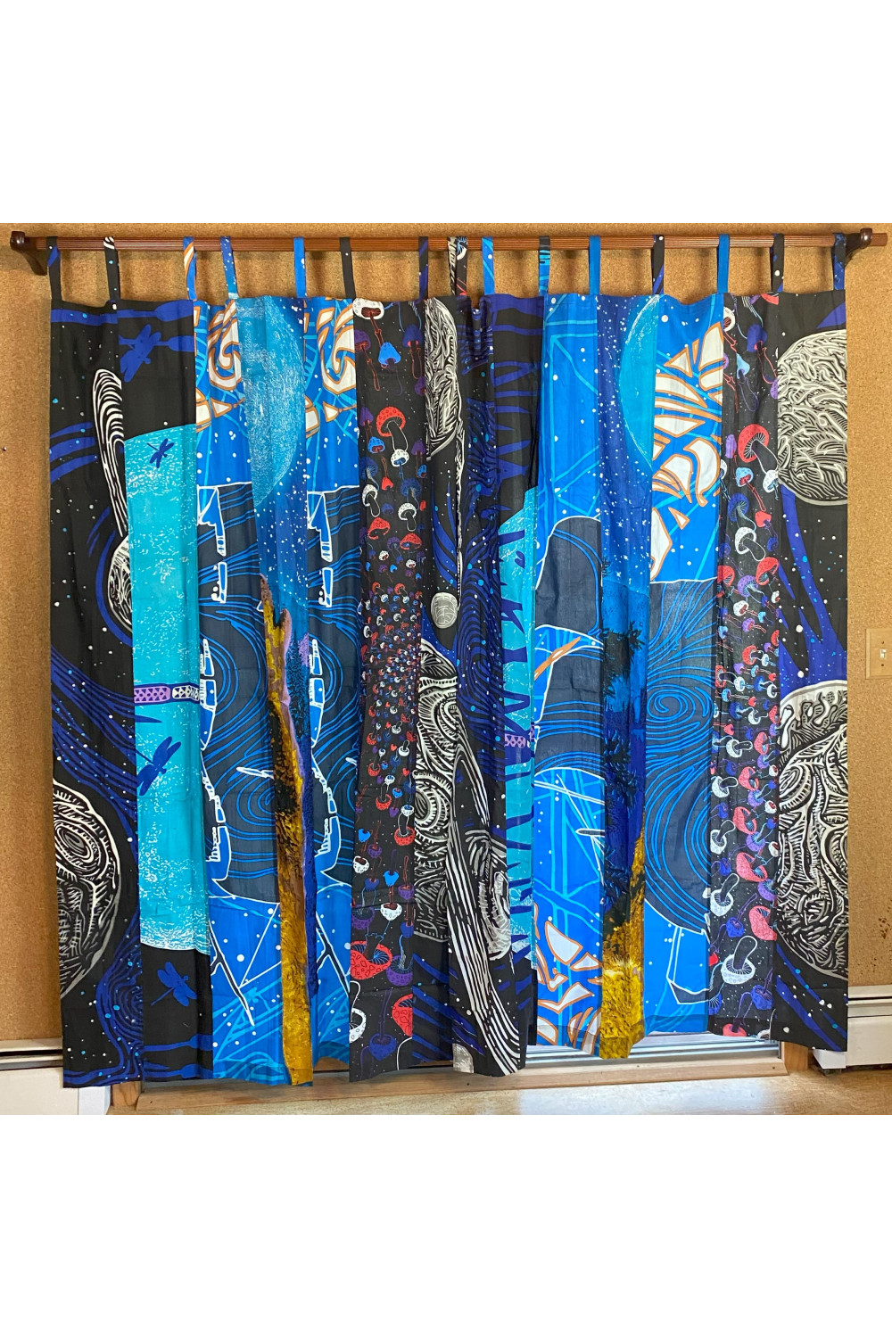 Sunshine Joy Tabbed Patchwork Glow-in-the-Dark Strip Curtain – Glow Theme by Chris Pinkerton and other artists