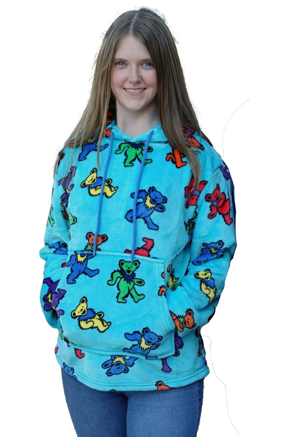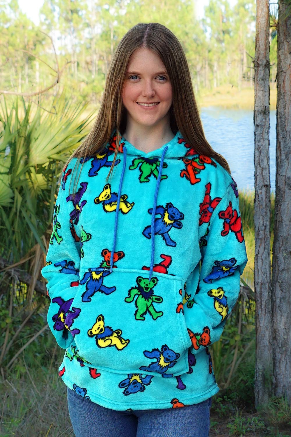 Grateful Dead Fleece Pull Over Hoodie Turquoise Bears
