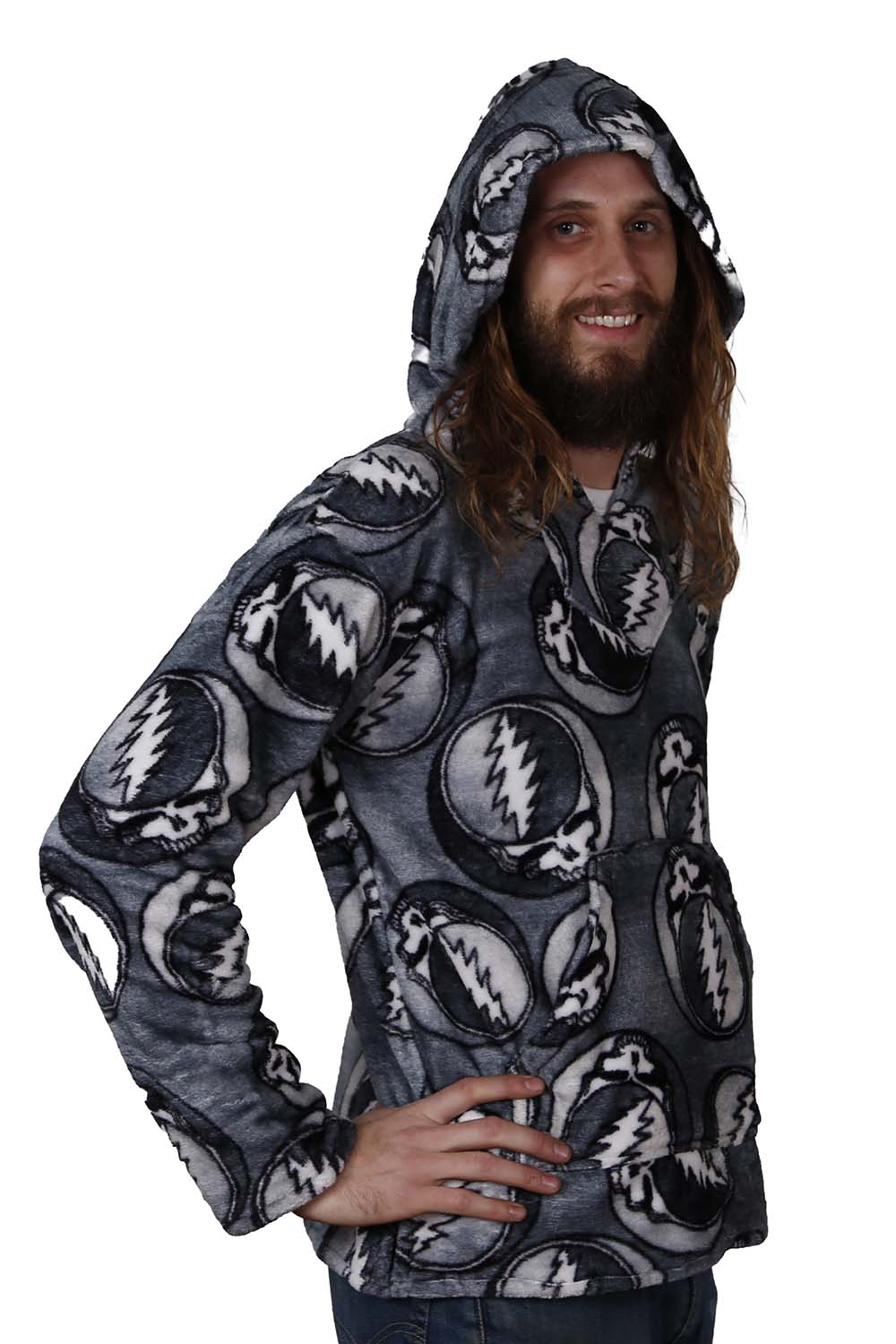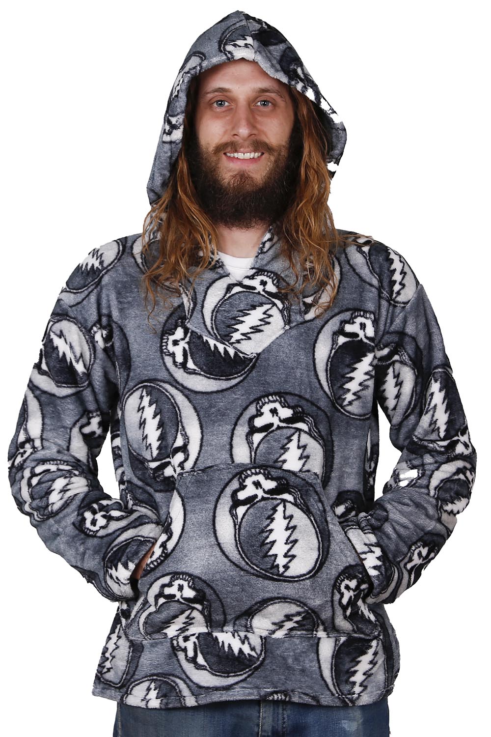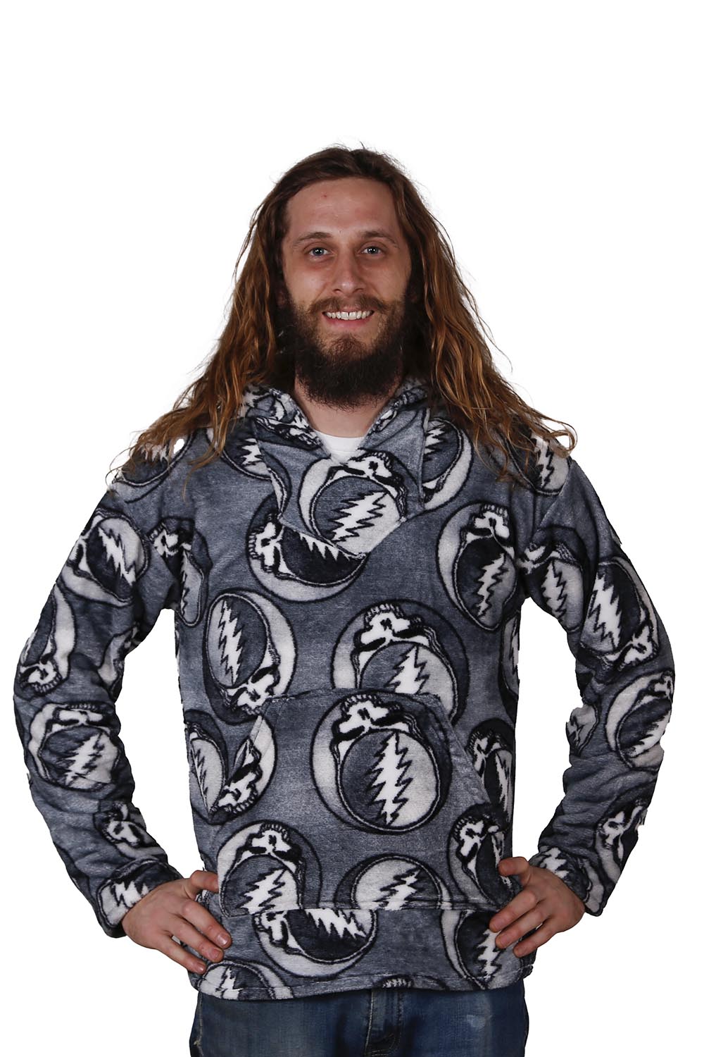 Grateful Dead Fleece Pull-Over Hoodie. Grey Stealie Pattern.