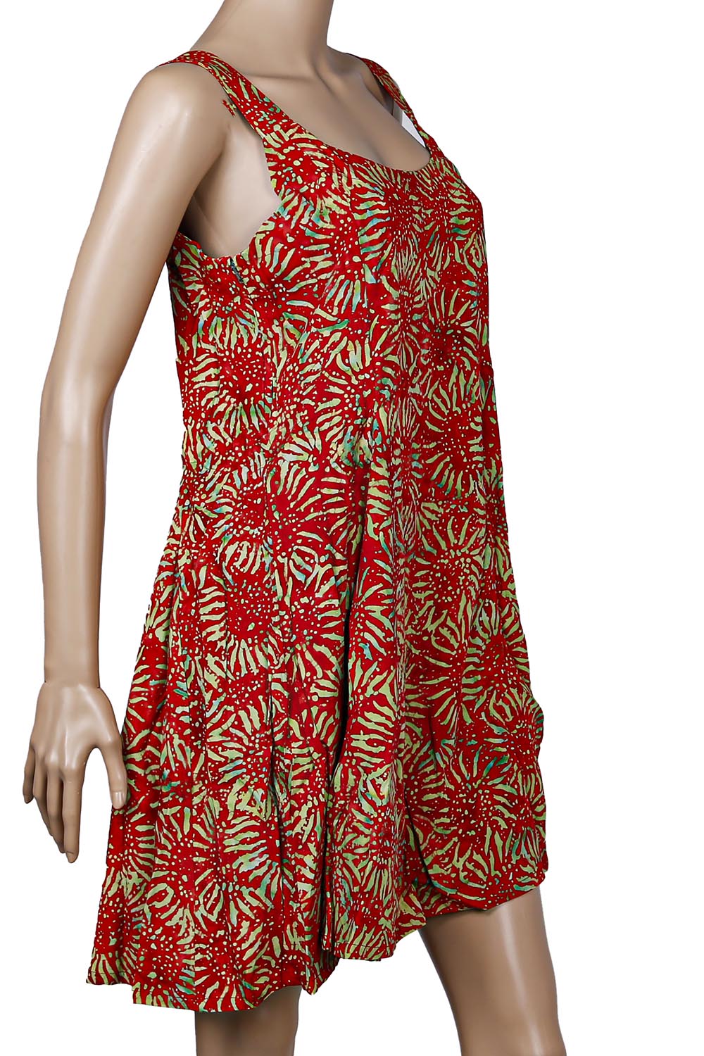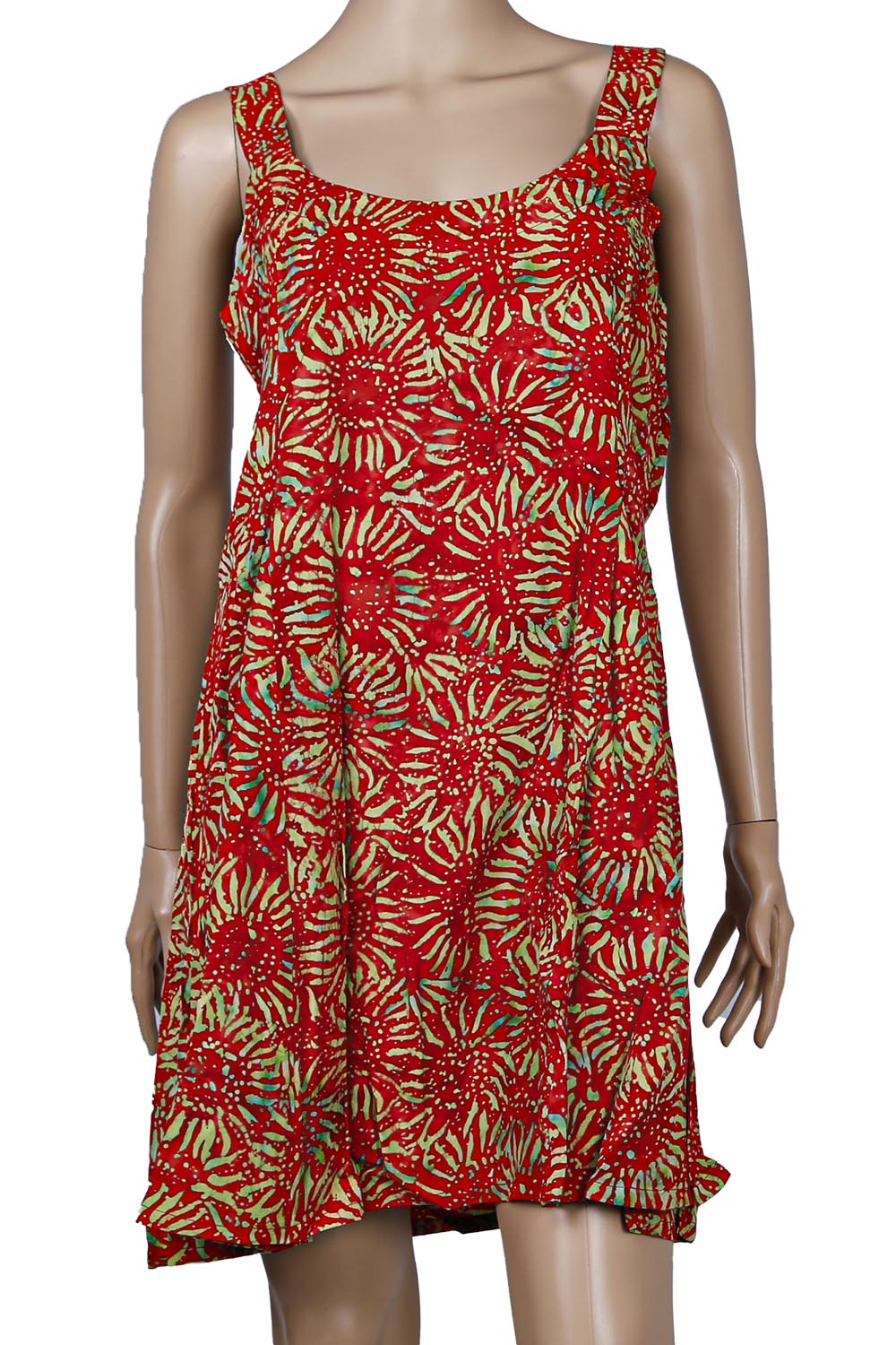 Hary Dary Short Strap Dress Red Sunflower. These super soft and colorful batik dresses are a great addition to any wardrobe. Perfect for the beach or a night on the town. Hary Dary is a leading name in batik clothing from Bali. Available in sizes Small through XL. Made from 100% #1 Rayon. The highest quality rayon available. Made in Indonesia.