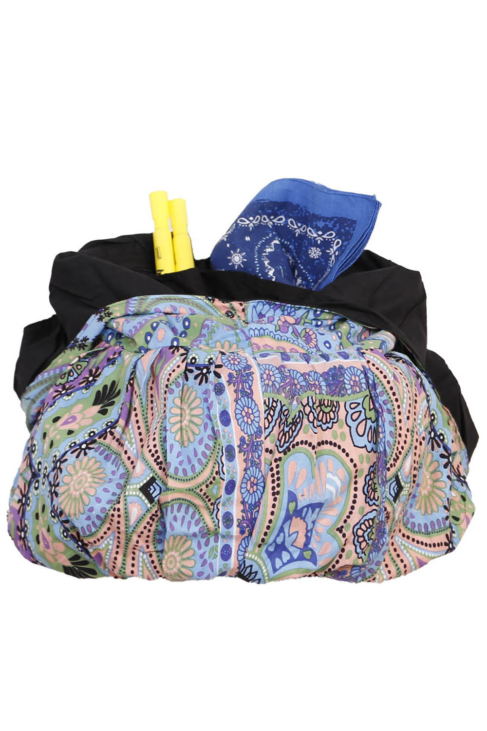 Our Sunshine Joy zippered top hobo bags are perfect for the person on the go. Great for trips to the beach, camping, festival-going, picnics, and more • These high quality totes feature a nice sturdy YKK zipper and two secret pockets on the inside of the bag. • Hobo bag measures approximately 16"W x 16"H with fixed 20" strap drop. ***PLEASE NOTE: Our bags are handmade so exact measurements vary from bag to bag. • 100% cotton • Made in India. • Modern Artists, Old School Production. Sunshine Joy infuses modern art with traditional production.  The attention to detail, while having a finger on the market pulse, sets our textile designs apart from others. • The printing process is unique to India. Each hobo bag has its unique imperfections.  In some cases what printers would call registration errors are intentionally included on the screen print to simulate hand woodblock prints • Sunshine Joy's hobo bags are printed with a special soft fiber reactive dye.  This is the same soft feeling of your favorite tie-dyed T-shirt.  ***PLEASE NOTE: The exact pattern of each bag may vary slightly from the photo shown, however the general aesthetic will be similar.