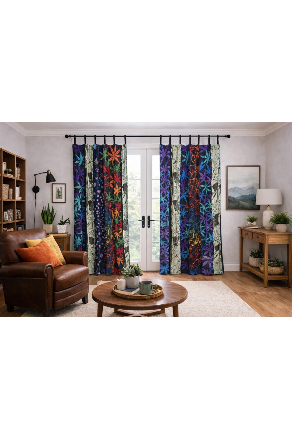 Leaf Life Theme - Sunshine Joy Bohemian Patchwork Curtain – Handmade Cotton Tab Top Panel – Hippie Home Decor *SALE*