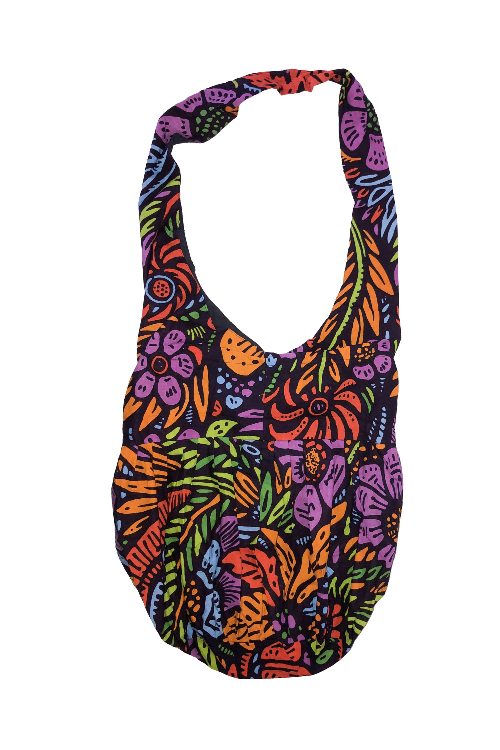 Our Sunshine Joy zippered top hobo bags are perfect for the person on the go. Great for trips to the beach, camping, festival-going, picnics, and more • These high quality totes feature a nice sturdy YKK zipper and two secret pockets on the inside of the bag. • Hobo bag measures approximately 16"W x 16"H with a fixed 20" strap drop. ***PLEASE NOTE: Our bags are handmade so exact measurements vary from bag to bag. • 100% cotton • Made in India. • Modern Artists, Old School Production. Sunshine Joy infuses modern art with traditional production. The attention to detail, while having a finger on the market pulse, sets our textile designs apart from others. • The printing process is unique to India. Each hobo bag has its unique imperfections. In some cases what printers would call registration errors are intentionally included on the screen print to simulate hand woodblock prints • Sunshine Joy's hobo bags are printed with a special soft fiber reactive dye. This is the same soft feeling of your favorite tie-dyed T-shirt. ***PLEASE NOTE: The exact pattern of each bag may vary slightly from the photo shown, however the general aesthetic will be similar.