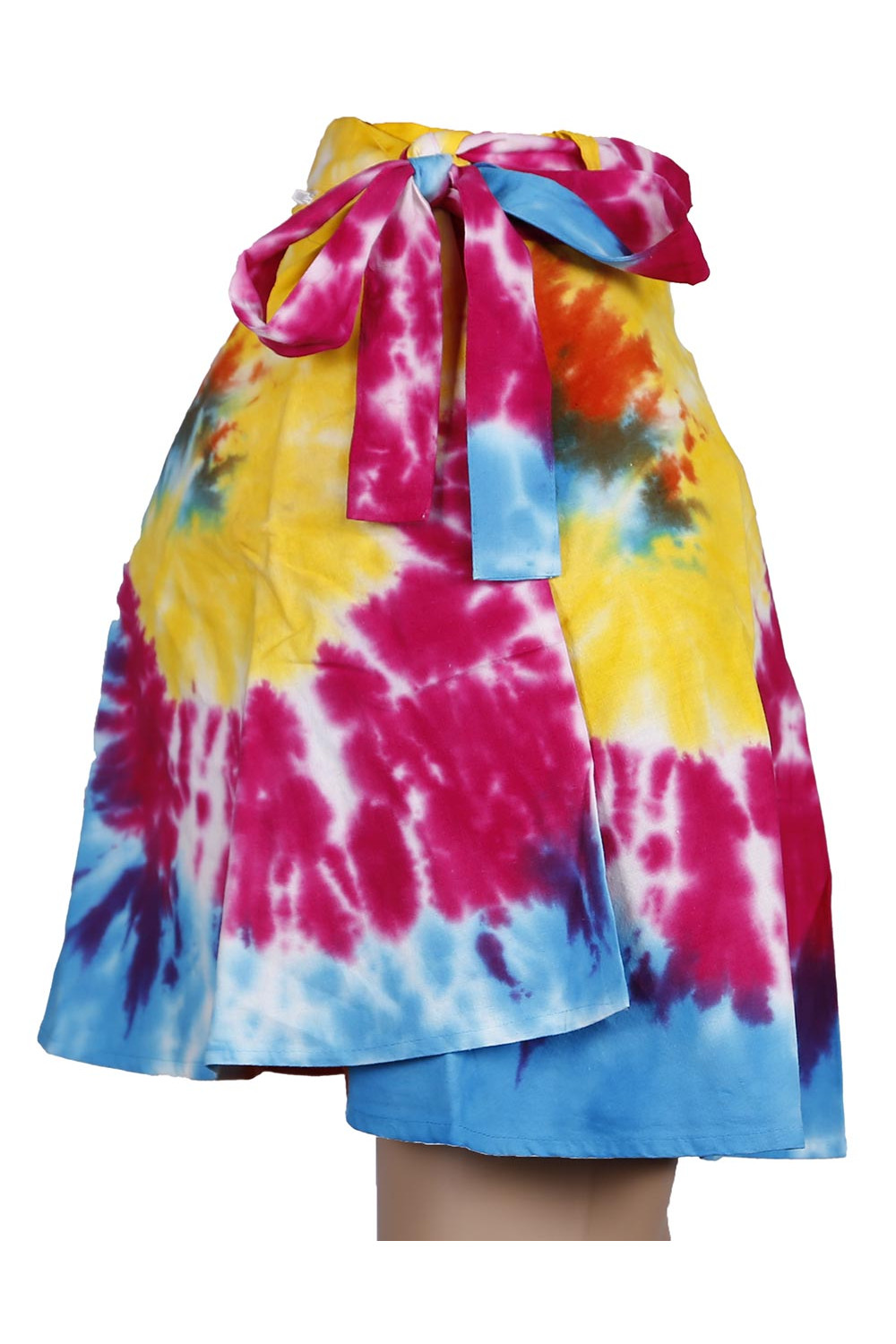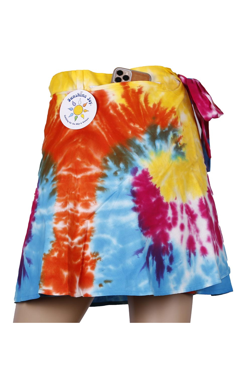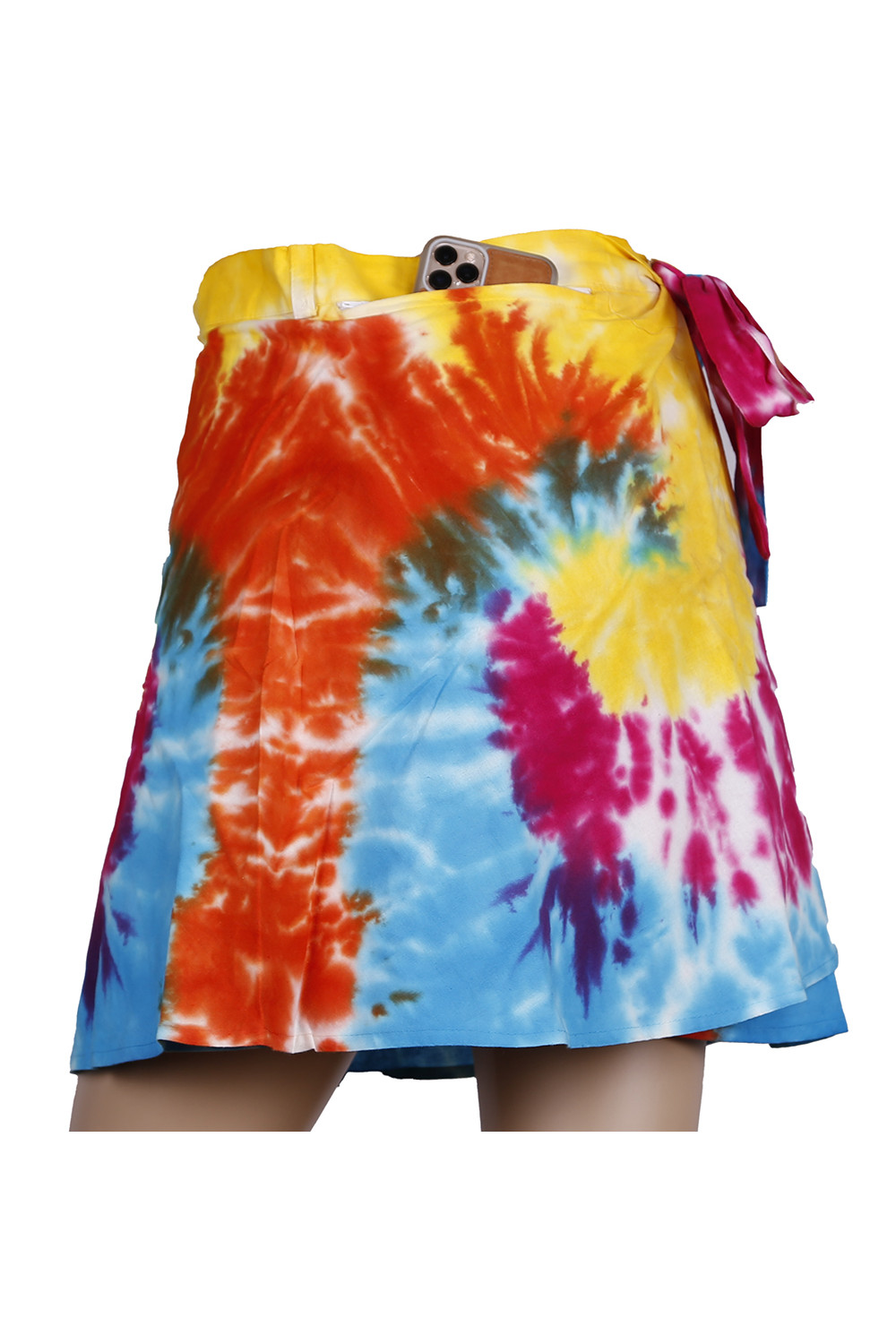 Rainbow Tie Dye Short Wrap Skirt with Zip Pocket