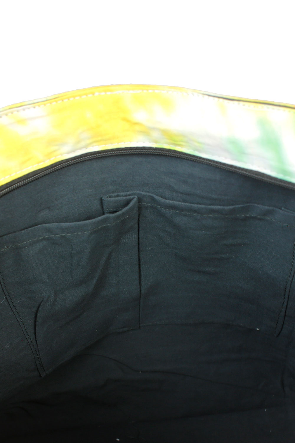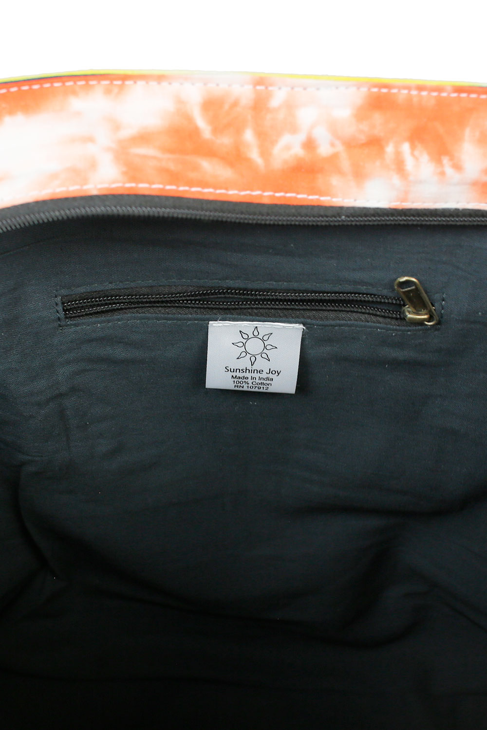 Our Sunshine Joy tote bags are perfect for the person on the go. Great for trips to the beach, camping, festival-going, picnics, and more. These high quality totes feature nice sturdy handles, a high quality zipper top, a secure, zippered pocket on the inside of the bag, and two inner pouches. Tote bag measures approximately 15 x 22 x 6 inches (H x L x W). **Please Note: The exact pattern of each bag may vary slightly from the photo shown, however the general aesthetic will be similar.