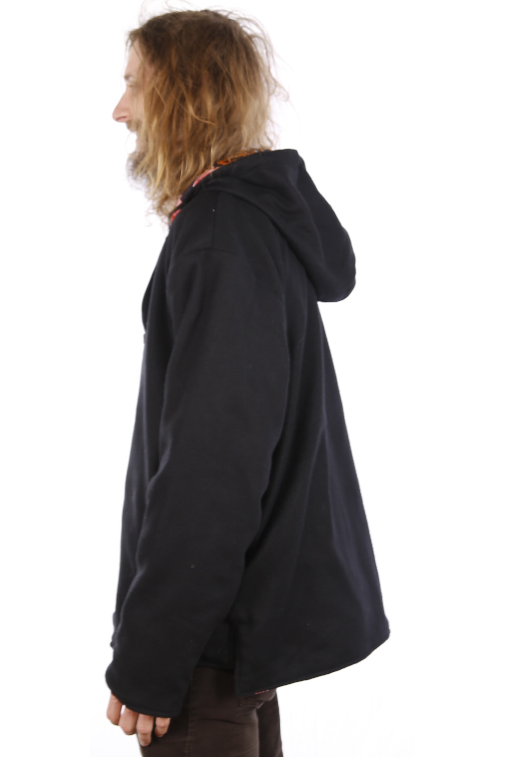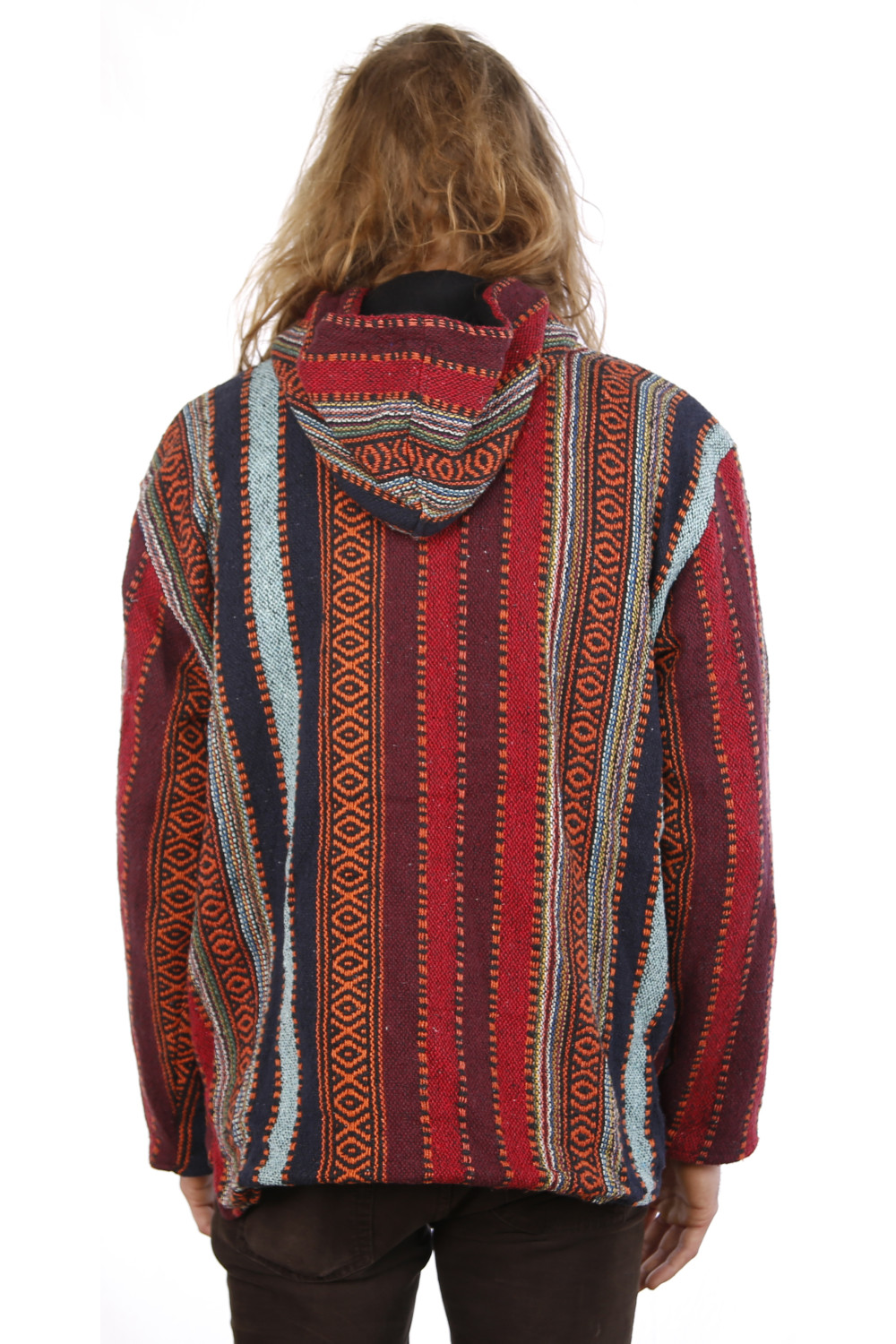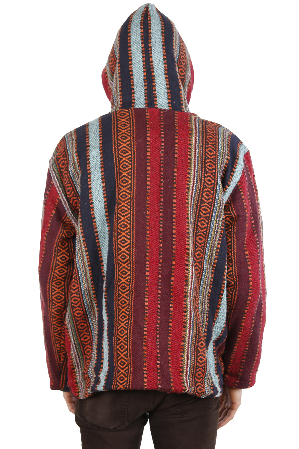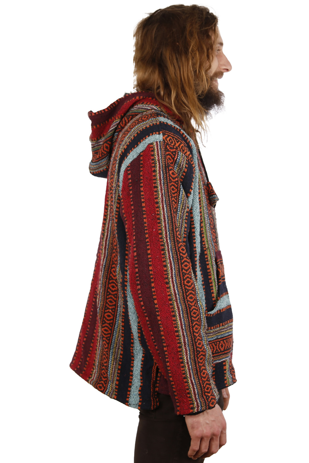 A unique twist on the ever-popular baja, our new fleece-lined, reversible woven zip-up hoodies are available in a variety of vibrant colored fabrics. The perfect outerwear for those brisk fall nights and sunny winter days.
