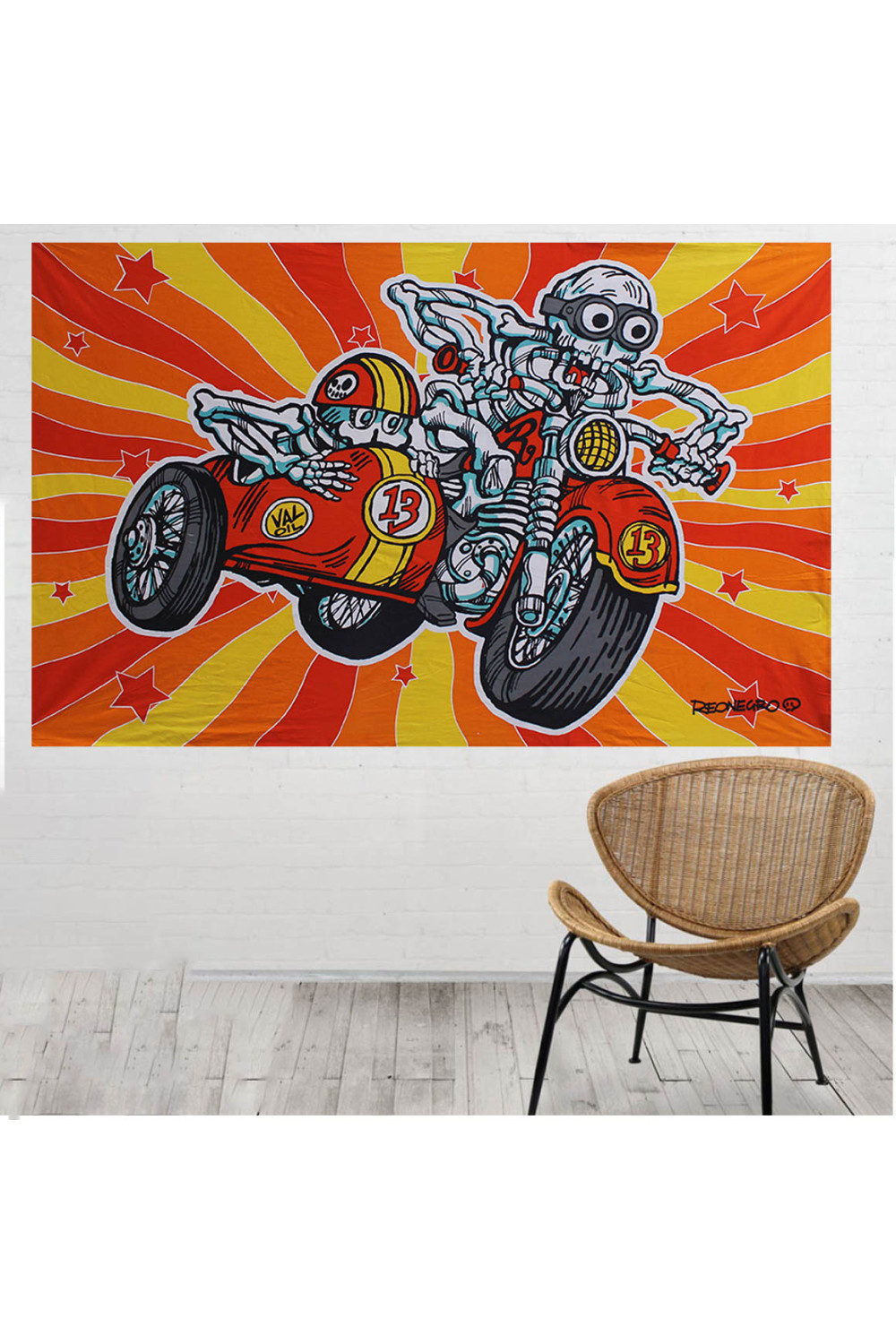Tags: Tapestries, Wall Art, Skeletons, Motorcycles, Hippie, Hippy, Artwork by Tony Reonegro,