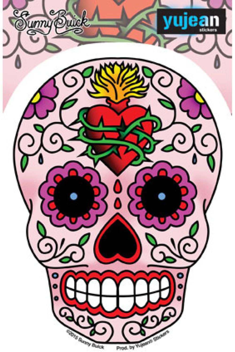 Sunny Buick Sacred Heart Sugar Skull Sticker.Measures 3.75 x 5".