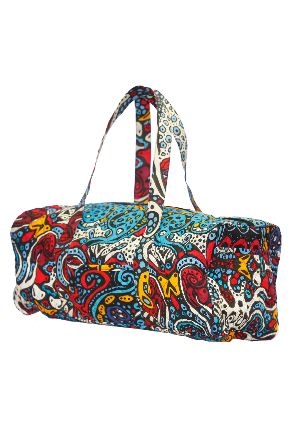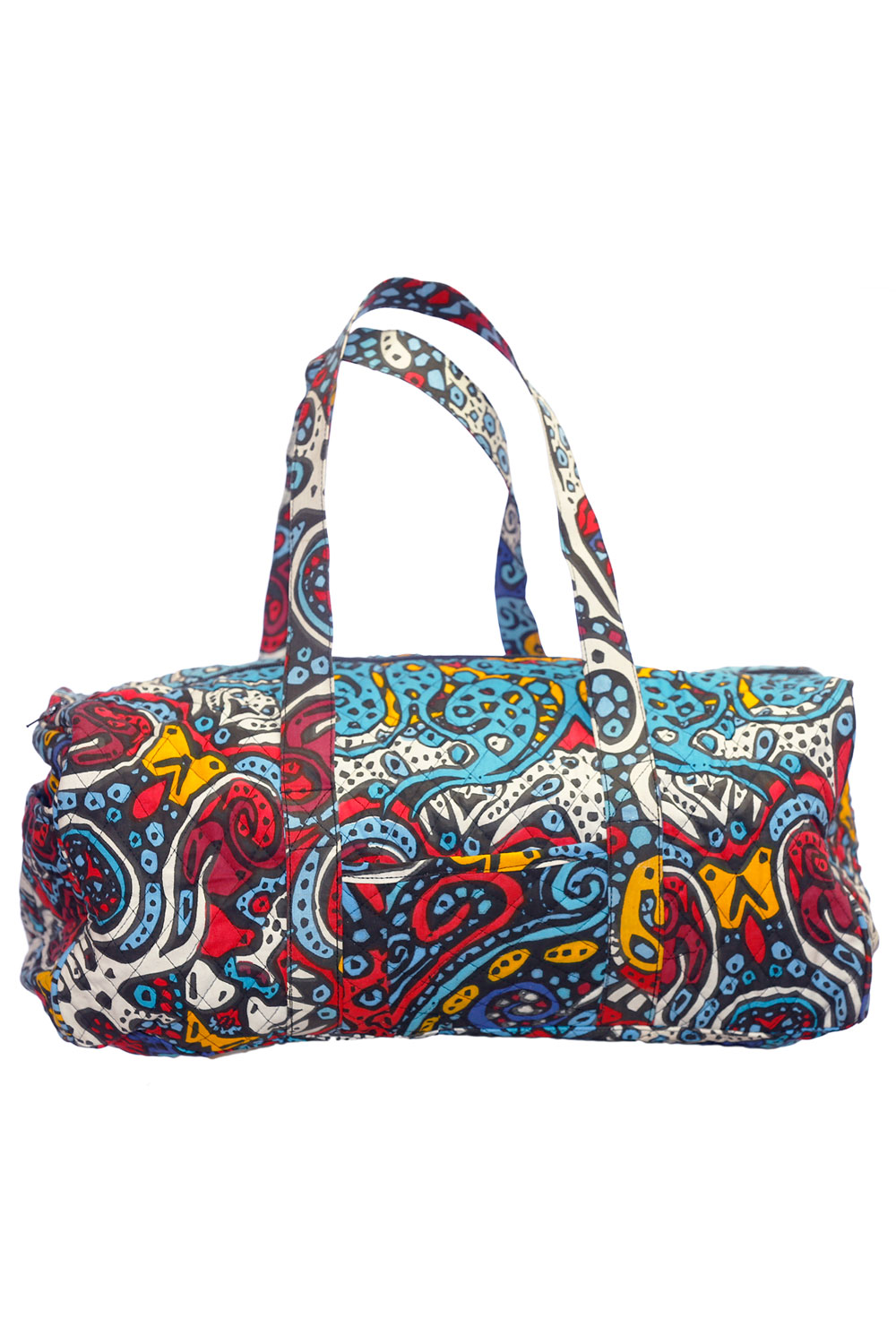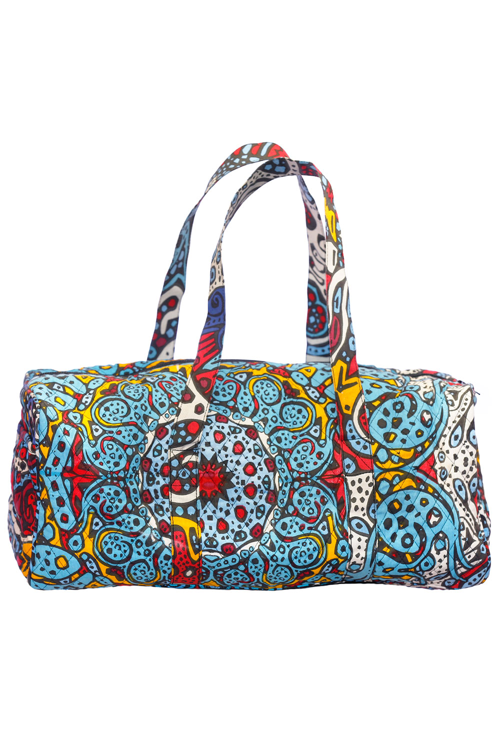 Our Sunshine Joy trippy duffle bags are perfect for the person on the go. Great for trips to the beach, camping, festival-going, picnics, and more. These high quality totes feature nice sturdy handles, a high quality zipper top, a secure, secret zippered pocket on the inside of the bag, as well as three convenient outside pouches. The duffle bag measures approximately 18 x 10 x 9 inches (H x L x W) with 13" fixed strap handles. **Please Note: The exact pattern of each bag may vary slightly from the photo shown, however the general aesthetic will be similar.