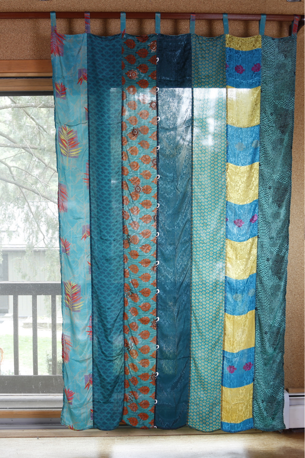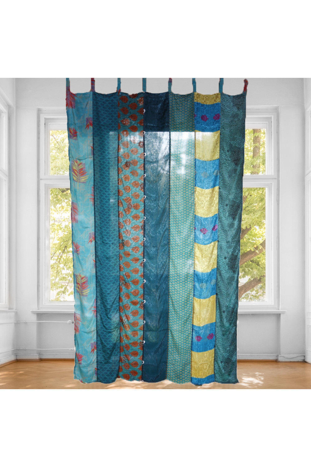 Lightweight and colorful, our single-panel curtains are made from re-purposed vintage sari fabric and come in a variety of colors and patterns. Each one is unique.