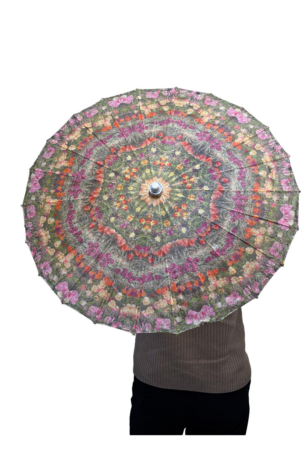 These parasols are popular for music festivals, beach days, outdoor markets, garden parties, and summer events. Easy to carry and easy to spot in a crowd, they are both a functional sun shade and a moving piece of art. Great for twirling.