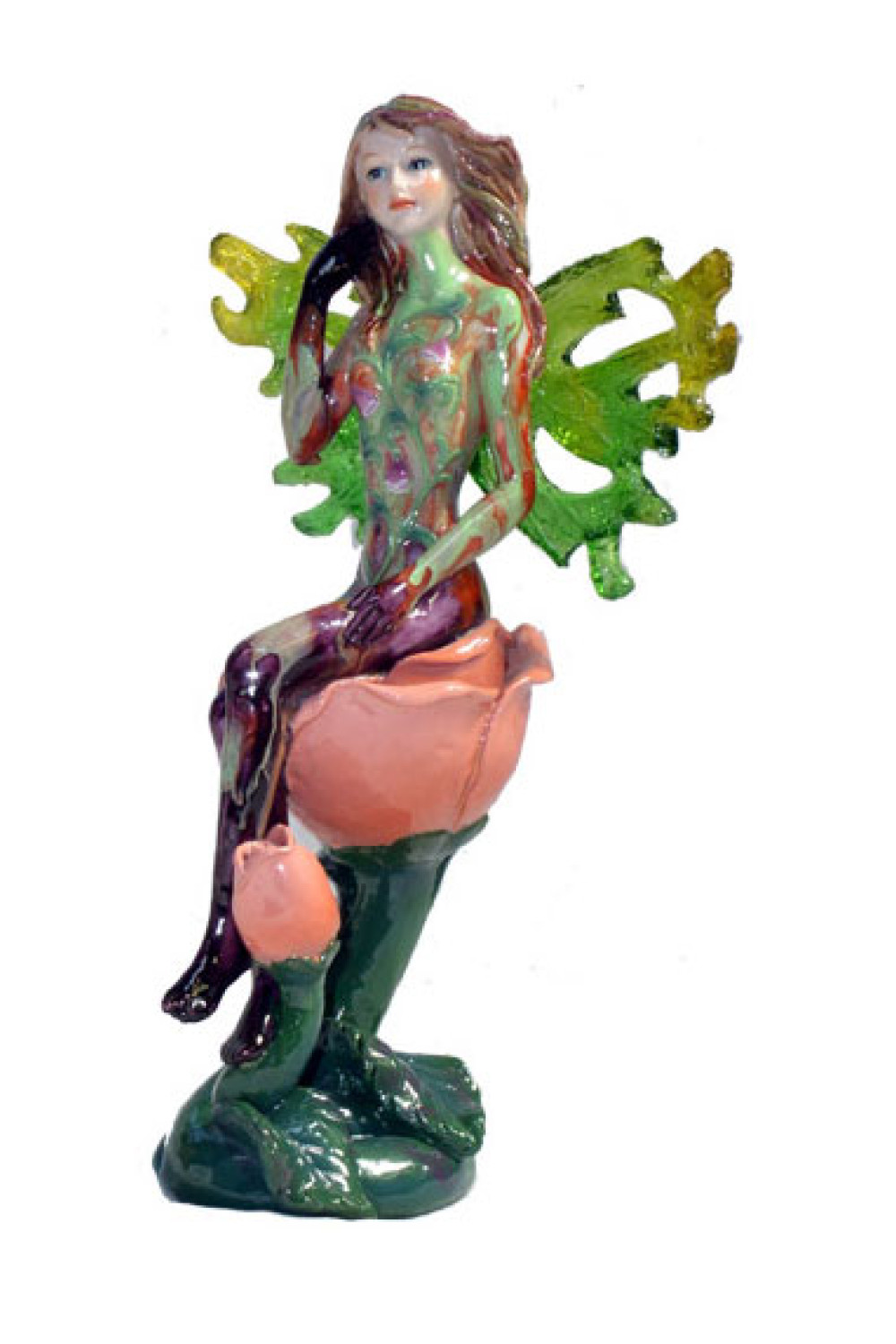 Sitting Hand-Painted Fairy Figurine with Magnetic Wings