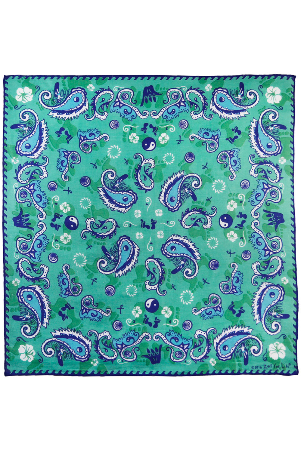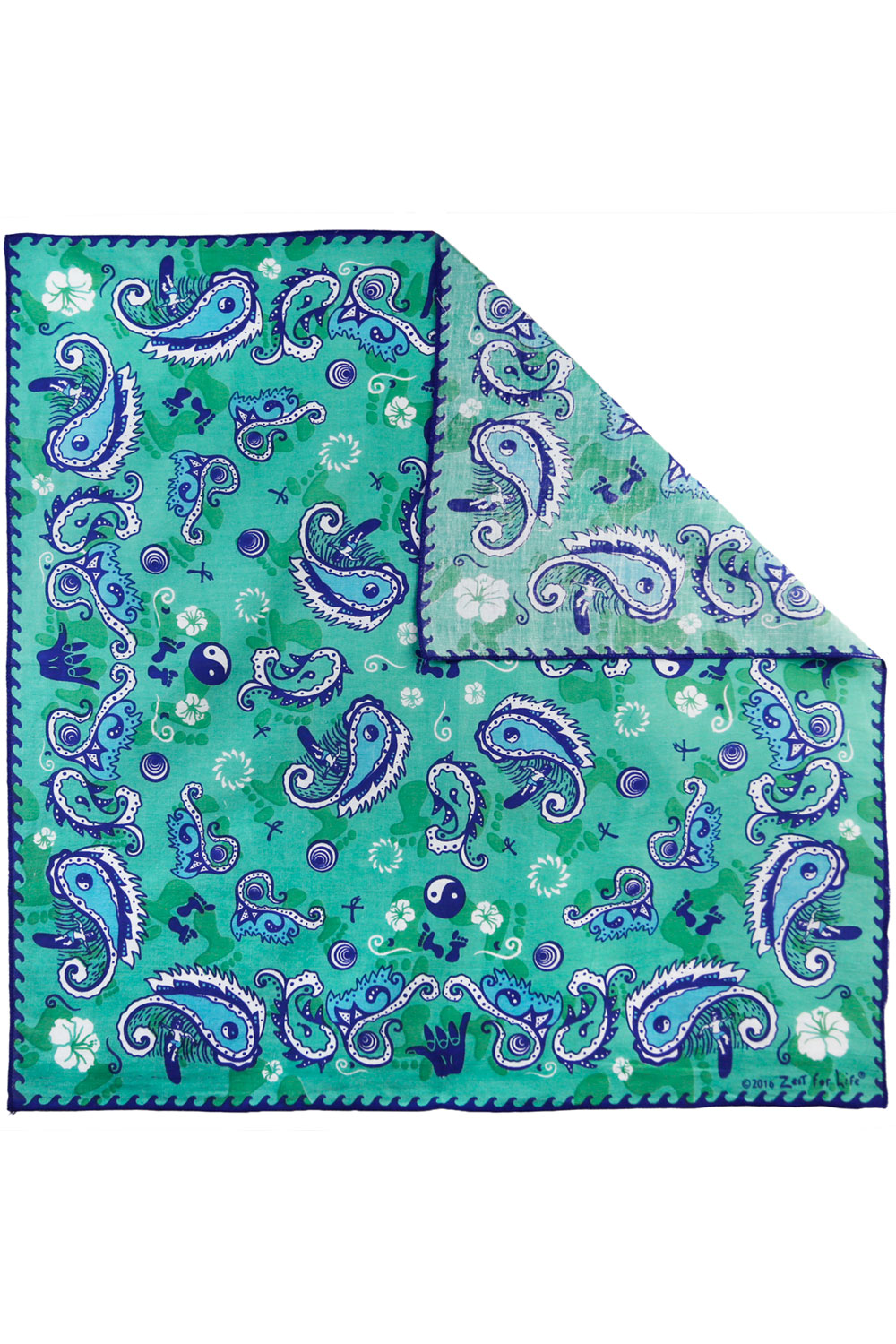 Zest For Life Surfing Bandana. 100% cotton. Measures 22 x 22 inches.