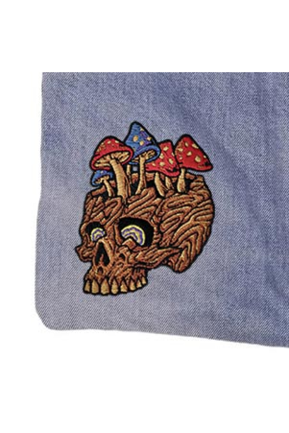 Denim Jean Shoulder Handbags Butt Bags Made from Upcycled Jean Pants - Mushroom Skull