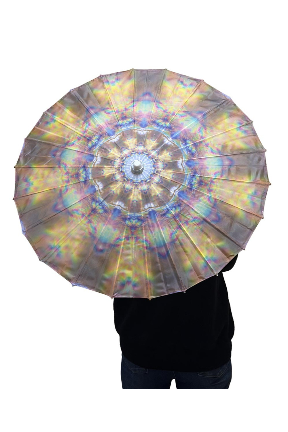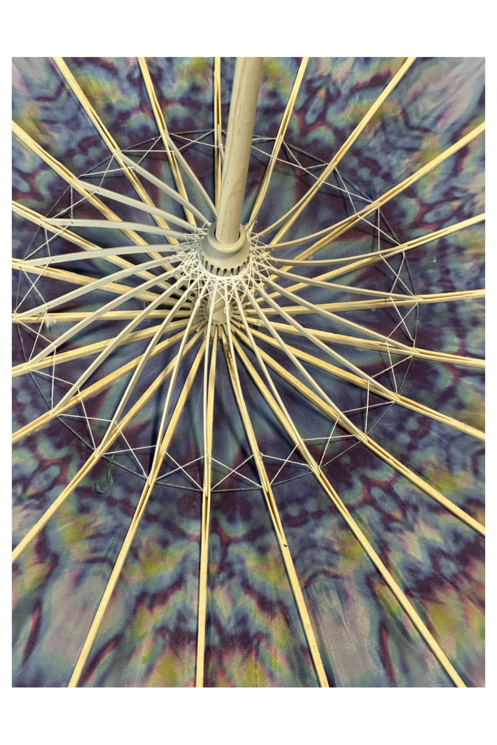 These parasols are popular for music festivals, beach days, outdoor markets, garden parties, and summer events. Easy to carry and easy to spot in a crowd, they are both a functional sun shade and a moving piece of art. Great for twirling.