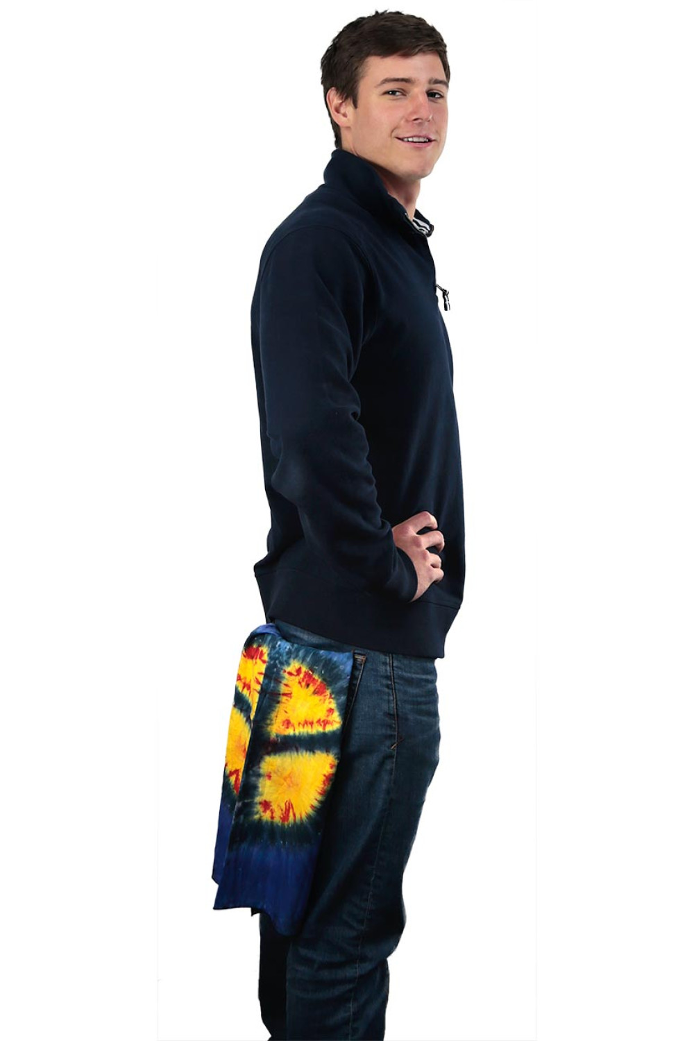 Tie-Dye Peace Sign Bandana Made from 100% cotton and dyed by hand, our tie-dye bandanas are durable, comfortable, and functional. They're perfect for festival-goers or anyone who spends out in the sun. They look great on dogs too, so don't forget to pick one up for Rover. Measures 22 inches x 22 inches.