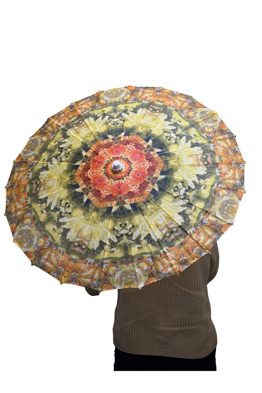 Yellow Daffy Dill parasol. Daffodils made in a mandala.
