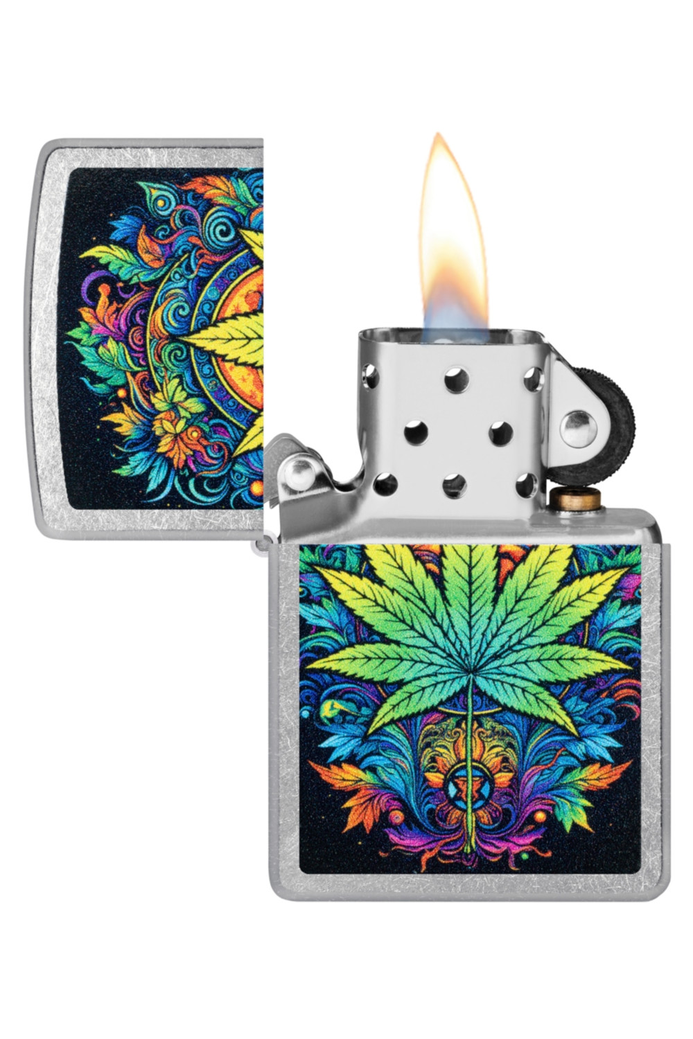 Colorful Leaf Design Classic refillable lighter designed for everyday use, collectors, and gift giving. Durable metal construction and reliable wind-resistant flame make this lighter ideal for lighting candles, campfires, grills, incense, and more. Refillable and reusable for long-term use, making it an economical and environmentally friendly alternative to disposable lighters. A compact pocket-sized lighter is great for travel, camping, outdoor use, emergency kits, and everyday carry. Popular with collectors, gift shops, smoke shops, outdoor stores, and general retail. A practical and classic lighter suitable for both personal use and retail display.